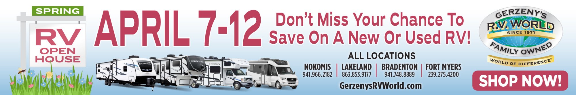 Home of the Happy Camper! As a family-owned and operated business for over 45 years, Gerzeny’s RV World is proud to be Florida’s premier destination for recreational vehicles. Our mission is simple: to find the perfect RV for your family’s journey, wherever the road may lead. Whether you are looking for the latest Class B, B+, or C models, or exploring our authorized lineup of Cortes Campers, we offer a "world of difference" in selection and savings. Visit us at any of our four convenient locations in Nokomis, Lakeland, Bradenton, or Fort Myers to experience why we are Florida's favorite RV dealer.
