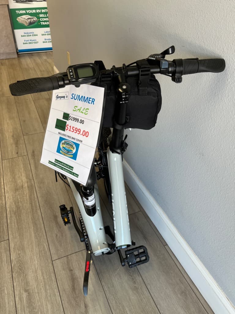 Weighs only 47 lbs. Strong 350-watt rear hub motor, maintenance free. Digital display. Max speed of 20 mph. Hydraulic disc brakes. 3 level pedal assist. Lithium Battery.