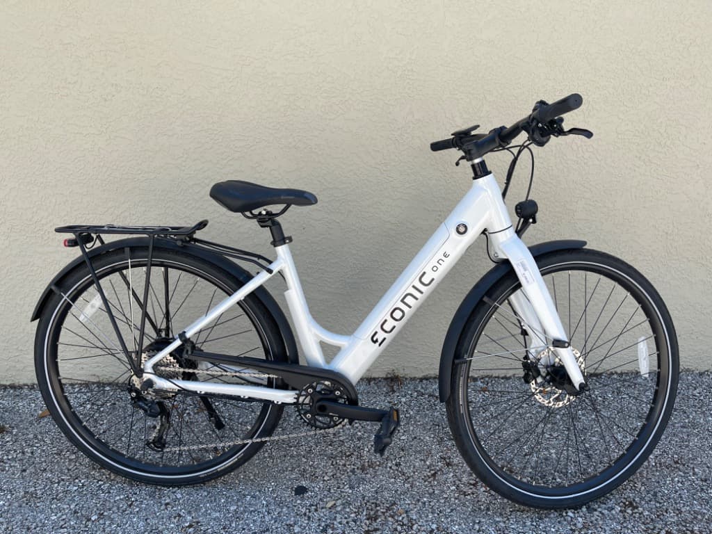 Econic One E Conic electric bike in White. Lithium battery powered e-bike available at Gerzeny's RV World in Fort Myers, FL.