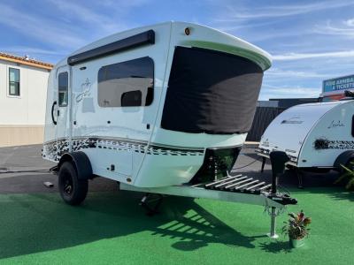 With any Sol travel trailer by inTech RV you will find strong, durable construction consisting of lightweight aluminum that is easier to tow and resists rust, water, and dents. The Tilt-Forward Design creates more space inside so you can stretch out, and the panoramic windshield gives a great view of the mountains, ocean, or forest! The elegant interior features tinted windows with shades, Infinity woven flooring, and a stainless steel cooktop and microwave. You will stay comfortable year around since these models include a 15K BTU A/C and a 16K BTU furnace. The optional Rover Package can also be added that features rugged decals, off-road tires with a 3" lift, two different color choices to choose from, plus more!