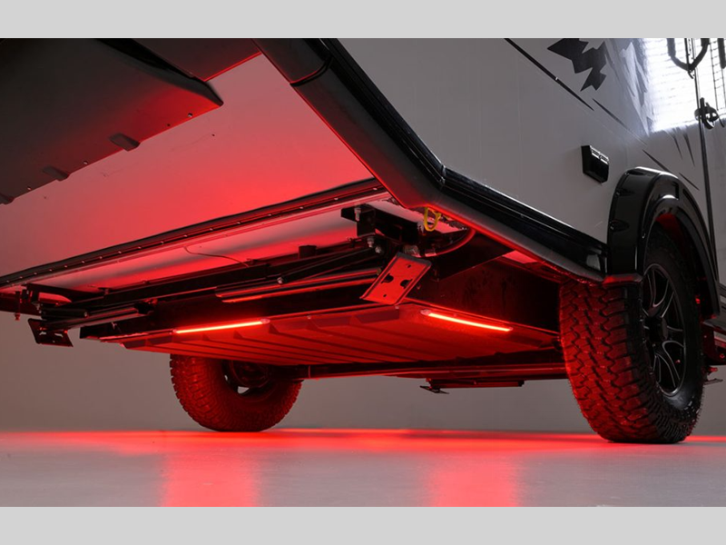 This teardrop trailer is designed with Ohio-Amish quality craftsmanship, with a spacious interior and a convenient wet bath. The Boondock molded fenders plus Boondock entry door handle and step are sure to catch your eye, and you can choose the optional Black Canyon Upgrade with a solar upgrade, holding tank heaters and underglow lights.