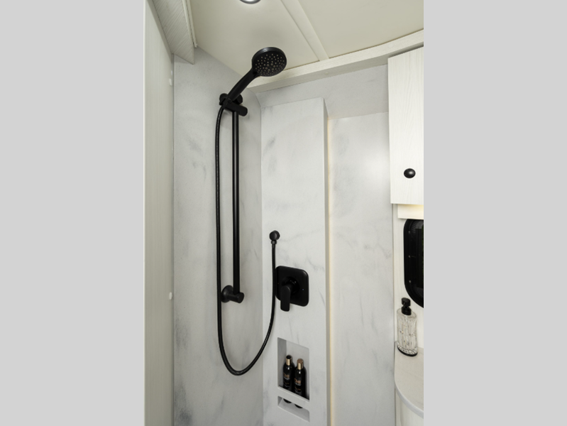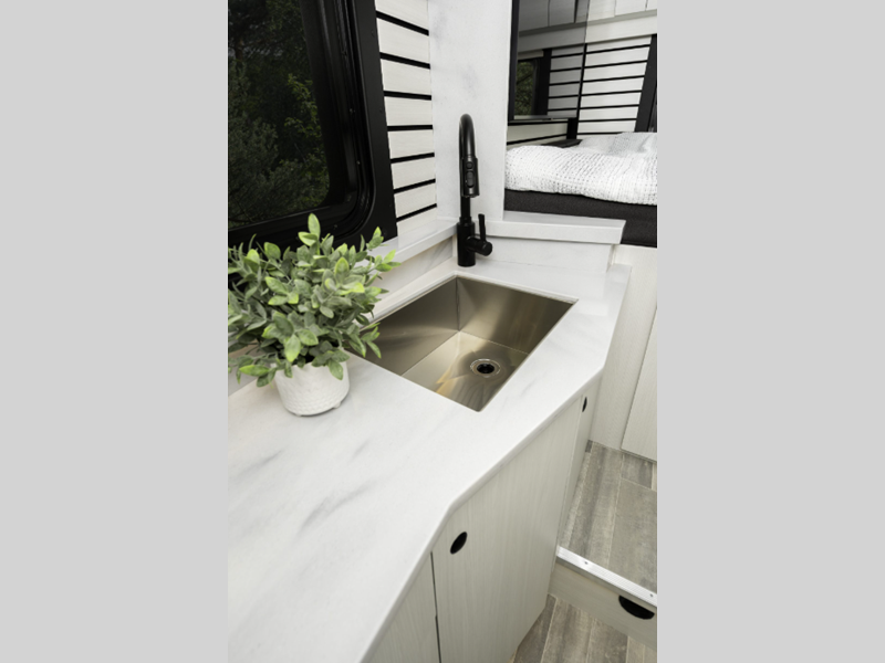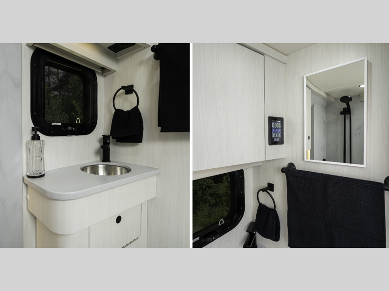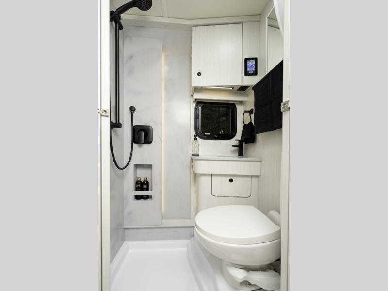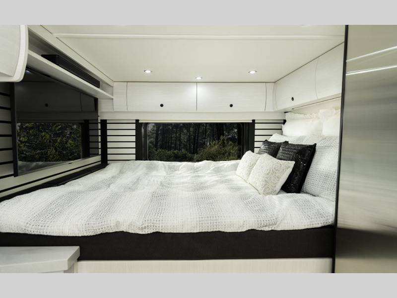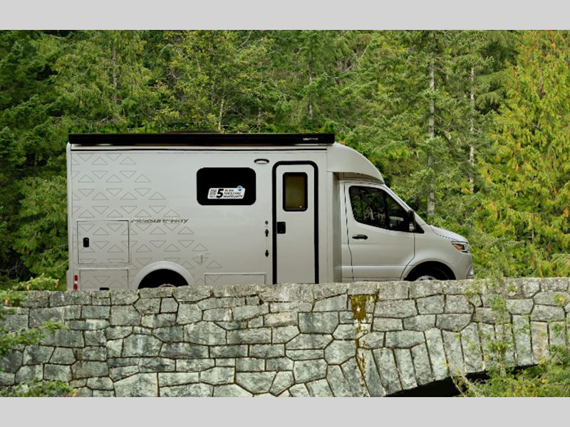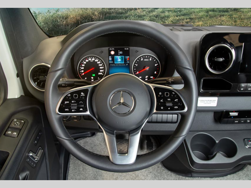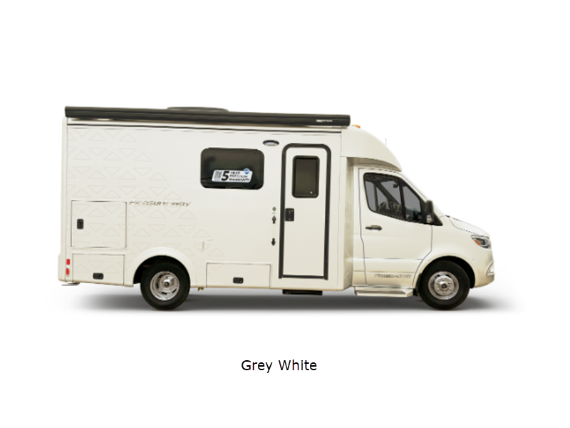 Sleeps 2 Length 22 ft 9 in Ext Width 7 ft 11 in Ext Height 10 ft 9 in Int Height 6 ft 8 in Exterior Color Brilliant Silver Metallic, Grey White Hitch Weight 4220 lbs GVWR 11030 lbs Fresh Water Capacity 28 gals Grey Water Capacity 25 gals Black Water Capacity 25 gals Tire Size LT215/85R16 Furnace BTU 11500 btu Generator 2.5 kW Onan QG 2500i LP Fuel Type Diesel Engine 4-Cylinder OM 654 High Output Chassis Mercedes-Benz 3500 Cab Chassis Horsepower 211 hp Fuel Capacity 24.5 gals Wheelbase 170 in Available Beds Queen Refrigerator Type 12V Norcold Refrigerator/Freezer Refrigerator Size 5.3 cu ft Cooktop Burners 1 Axle Weight Front 4410 lbs Axle Weight Rear 7720 lbs LP Tank Capacity 10.4 gals Water Heater Type Truma AquaGo Comfort Plus AC BTU 13500 btu Basement Storage 64 cu. ft. TV Info 43" Smart LED TV Awning Info Fiamma Power w/LED Lights Gross Combined Weight 15250 lbs Shower Type Wet/Bath Shower Electrical Service 30 amp