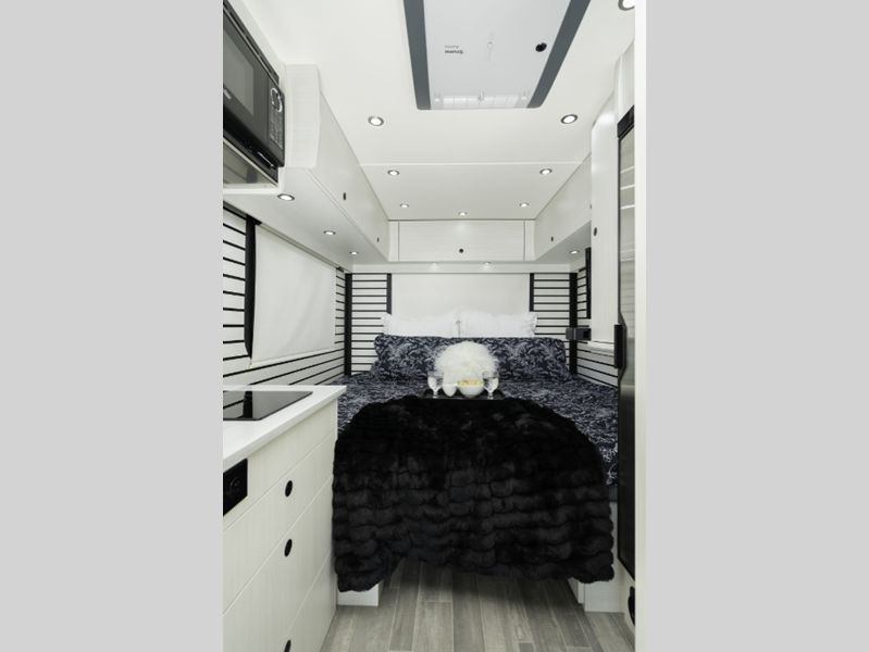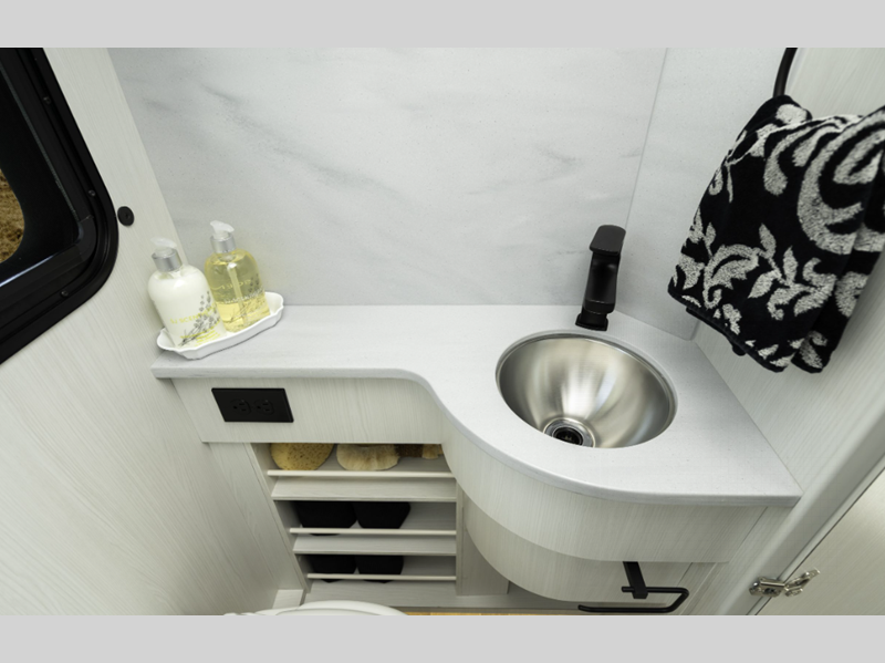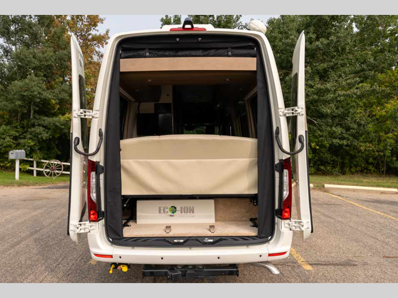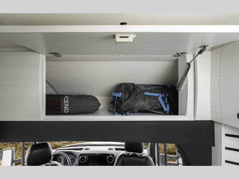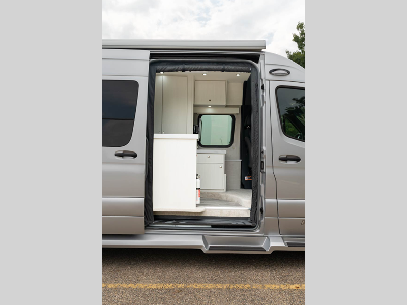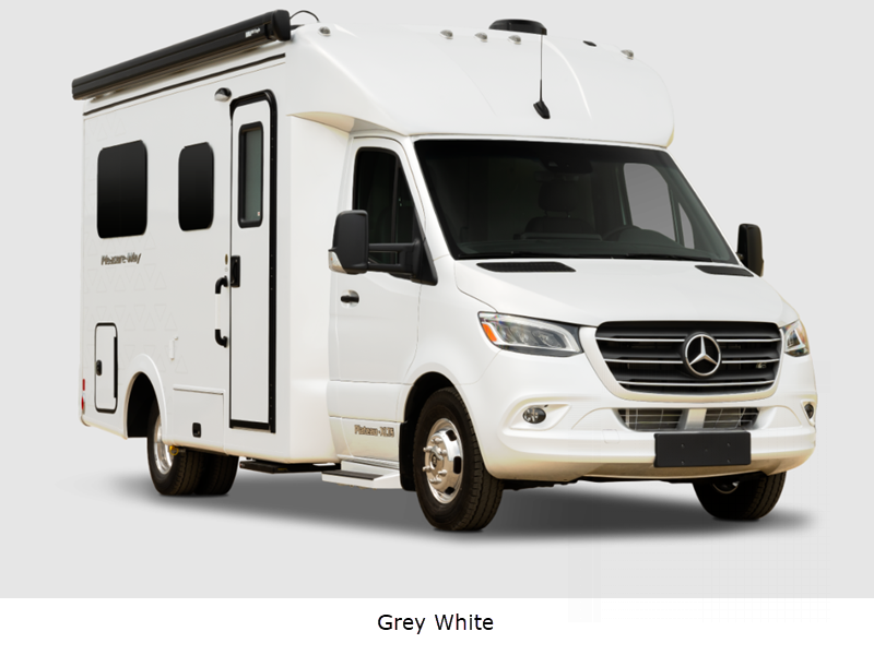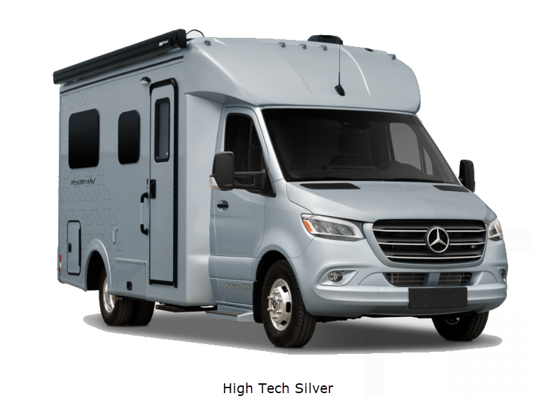 Sleeps 3 Length 22 ft 9 in Ext Width 9 ft 2 in Ext Height 10 ft 9 in Int Height 6 ft 8 in Interior Color Cashmere, Flint Exterior Color High Tech Silver, Grey White GVWR 11030 lbs Cargo Capacity 4220 lbs Fresh Water Capacity 28 gals Grey Water Capacity 20.4 gals Black Water Capacity 17.4 gals Tire Size LT215/85 R16 Furnace BTU 11500 btu Generator 2.5 KW Onan QG 2500i LP Fuel Type Diesel Engine 4-Cylinder OM 654 High Output Chassis Mercedes-Benz Sprinter 3500 Horsepower 211 hp Fuel Capacity 26 gals Wheelbase 170 in Refrigerator Type 12V Norcold Refrigerator Size 5.3 cu ft Cooktop Burners 1 Shower Size 32" Number of Awnings 1 Axle Weight Front 4410 lbs Axle Weight Rear 7720 lbs Water Heater Type Truma AquaGo Comfort Plus AC BTU 13500 btu TV Info LR 24" Smart LED TV Awning Info Fiamma Power w/ LED Lights Gross Combined Weight 15250 lbs Shower Type Radius Electrical Service 30 amp