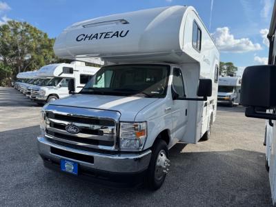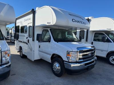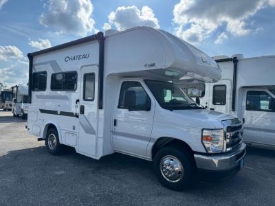 With any Chateau ESpec Class C gas motorhome by Thor Motor Coach, you will find convenient amenities, a modern interior, and a reliable Ford E-Series chassis, with an optional Chevy chassis on select models to power your adventures. There is welded tubular aluminum roof and sidewall cage construction, a one-piece fiberglass front cap, and a premium one-piece domed roof membrane for added strength. Residential vinyl flooring will be easy to keep clean, and you'll love the sleek look of the Hampton Collection two-toned cabinets. These motorhomes also include a 50 State 4.0 kW dual gas/LP generator and a 30-amp shoreline power cord to keep you going, along with a tankless water heater and 13,500 roof front A/C to ensure your comfort!