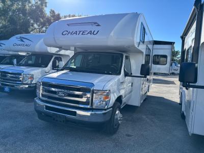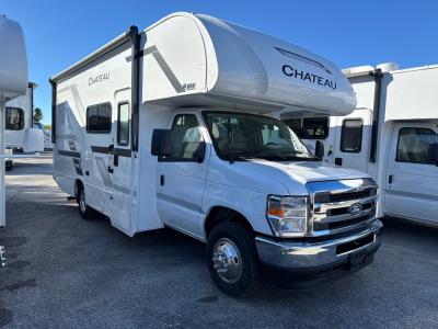 With any Chateau ESpec Class C gas motorhome by Thor Motor Coach, you will find convenient amenities, a modern interior, and a reliable Ford E-Series chassis, with an optional Chevy chassis on select models to power your adventures. There is welded tubular aluminum roof and sidewall cage construction, a one-piece fiberglass front cap, and a premium one-piece domed roof membrane for added strength. Residential vinyl flooring will be easy to keep clean, and you'll love the sleek look of the Hampton Collection two-toned cabinets. These motorhomes also include a 50 State 4.0 kW dual gas/LP generator and a 30-amp shoreline power cord to keep you going, along with a tankless water heater and 13,500 roof front A/C to ensure your comfort!