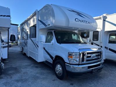 Experience a smooth ride to each destination with the Thor Motor Coach Chateau Class C gas motorhomes! There is a Ford E-Series chassis or optional Chevrolet chassis on select models, and each model includes an 8,000 lb. trailer hitch to bring the family car along. They are constructed with a welded tubular aluminum roof, sidewall cage construction, vacu-bond laminated roof, walls, and floor with block foam insulation to keep the heat and air conditioning inside. The slick fiberglass exterior with graphics package and black framed windows are sure to turn heads down the highway too. Inside, you'll be met with residential vinyl flooring, window privacy shades on select models, a power bath vent, and pressed laminate kitchen countertops. There is even a tankless water heater for endless hot showers, a 4.0 kw gas generator to keep you going, and solar prep for off-grid capabilities!