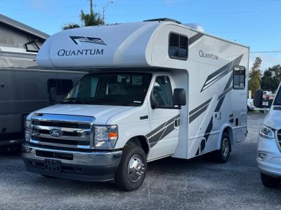 With any Quantum ESpec Essential Class C gas motorhome by Thor Motor Coach, you will find convenient amenities, a modern interior, and a reliable Ford E-Series chassis, with an optional Chevy chassis on select models to power your adventures. There is welded tubular aluminum roof and sidewall cage construction, a one-piece fiberglass front cap, and premium one-piece Crossflex exterior roofing for added strength. Residential vinyl flooring will be easy to keep clean, and you'll love the sleek look of the Harbor Collection, three-toned cabinets. These motorhomes also include a 50 state 4.0 kW dual gas/LP generator and a 30-amp shoreline power cord to keep you going, along with a tankless water heater and 13,500 roof front A/C to ensure your comfort!