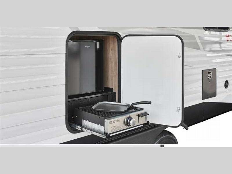 Sleeps 5 Slides 1 Ext Width 8 ft Hitch Weight 670 lbs Dry Weight 6520 lbs Available Beds Queen Refrigerator Type 12 Volt Refrigerator Size 10 cu ft Cooktop Burners 2 Shower Size 30" x 35" Number of Awnings 1 Water Heater Type Tankless Axle Count 2 Shower Type Standard Electrical Service 30 amp Similar Floorplans